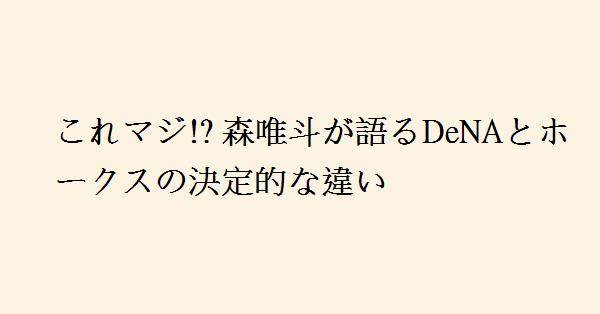 1、それは大事な指摘。横浜は、大雑把なのが伝統だからなんて言っている内は、余程選手が集まらない限りリーグ優勝は困難ですね。ソフトバンクの練習を見てきた選手からすると、物足りないのは分かる気がします。サインで泥臭く1点取りにいく姿勢や、打席や守備での雑さが、積もり積もって。三森あたりも、色々思うことはあるでしょうね。そんな風に外から来た選手が言える環境であるなら、少し変化がありそうですね。