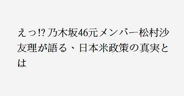 4、こういうタレントがいると、あの農相も首相もJAも、大喜びですね。そのうちコメのCMにも起用されるかもしれません。政府もJAも、いくら高かろうと国民はコメを食うと舐めているのです。しかし、価格を上げていけば、米作農家は喜ぶでしょうが、消費者は生活防衛のために、自然とコメから離れざるを得ません。