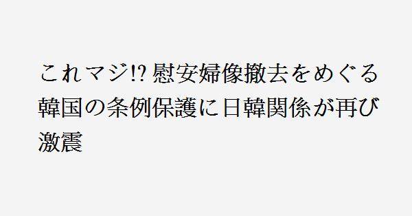2、>日本政府は、慰安婦像設置は外国公館の安寧や威厳の保護を定めたウィーン条約に違反するとして撤去を求めている撤去に関しては今後も強く韓国に求めて行くべきまた、世界に発信した方が良い地元自治体に関しては韓国の問題、日本が気にする事ではない