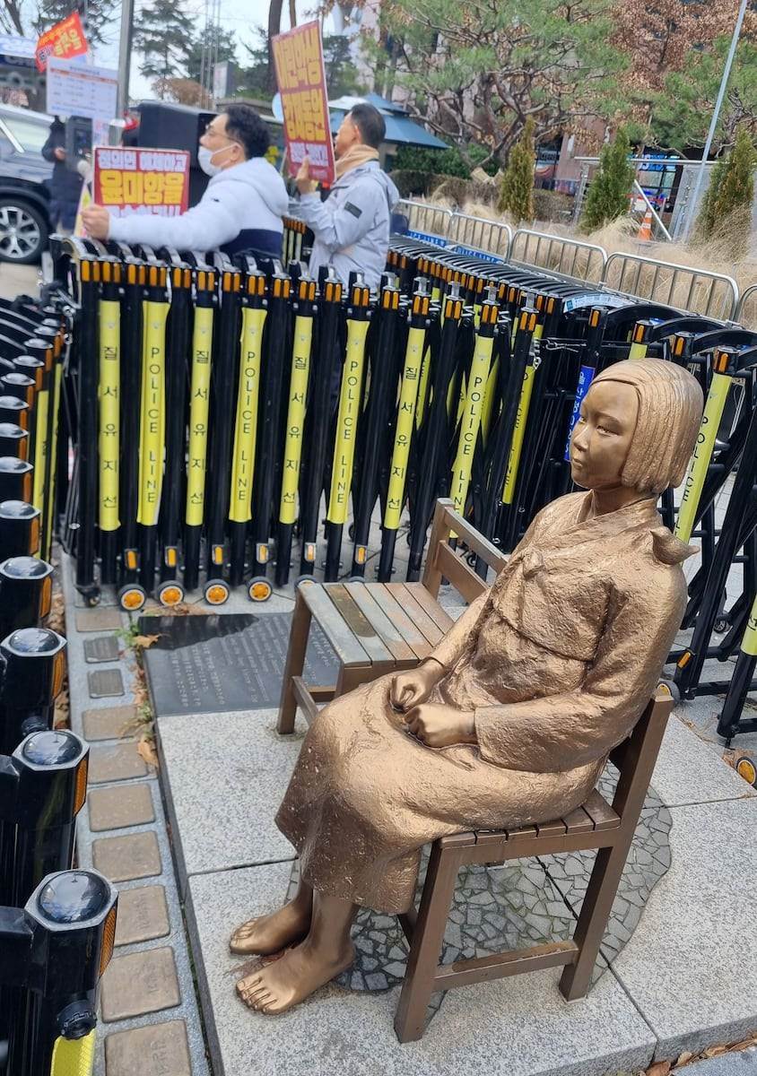 2015年の日韓合意では、韓国の日本大使館前にある慰安婦像を巡り「適切に解決する」ことが求められていました。しかし、像撤去には至らず、現在も保革両派が対立しデモを繰り広げています。この像は1992年から続く集会の記念として2011年に設置され、2017年には地元自治体によって「公共造形物」として保護されています。日本政府はウィーン条約違反として撤去を求めていますが、地元条例により困難な状況です。