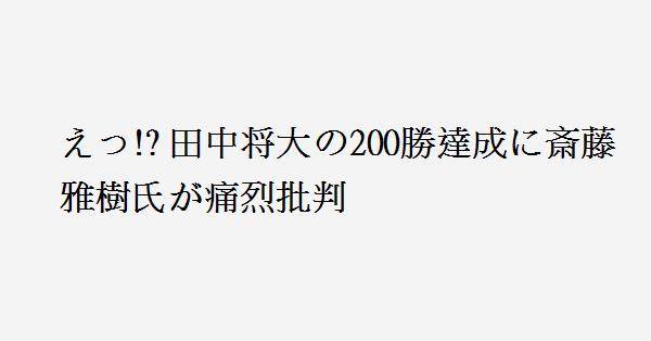 田中将大選手は、今季巨人に加入後、9月30日の中日戦で日米通算200勝を達成しました。しかし、シーズンの成績は10試合、課された45回で3勝4敗、防御率5.00と振るわなかったため、先発の役割を果たせなかったとされています。斎藤雅樹氏はプロ野球ニュースの中で「シーズンで3勝では、先発として活躍したとは言えない」とコメントしました。