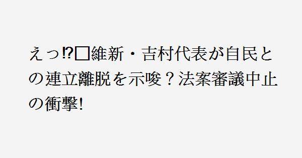 で、連立離脱で脅して法案提出させたが、そこで終わりそう。これで維新はどう出るのか??なんか、連立したかった思いは自民よりも維新のほうが強かったのかね?もう維新は終わってるよね。「改革のためには議員定数で身を切るところを見せる」なんて叫んでいたけれど、いろいろ党の問題が出てきていてこの叫びも意味がないからな。「身を切るなら公金の扱いを何とかしろよ」となっちゃうものね。