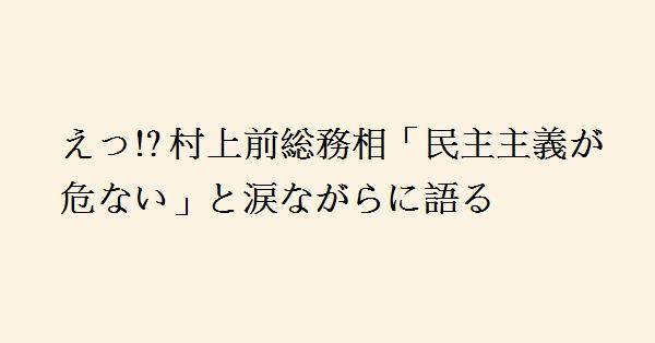 3、この人のいう民主主義というのは、大多数の弱い立場の国民から税金を絞れるだけ絞り取り、その恩恵を自分を含めた少数の既得権益者達だけで独占することなんですかね??この人の涙は多分自分が国民が納めた税金を好きなだけ使えなくなるかもしれないっていう涙だろうね。