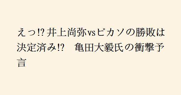 2、この亀田の予想は的確で的中率は90%だな!! 兄貴と弟はいつも反井上で違うこと言うけど意外に大毅は忖度ないよね。