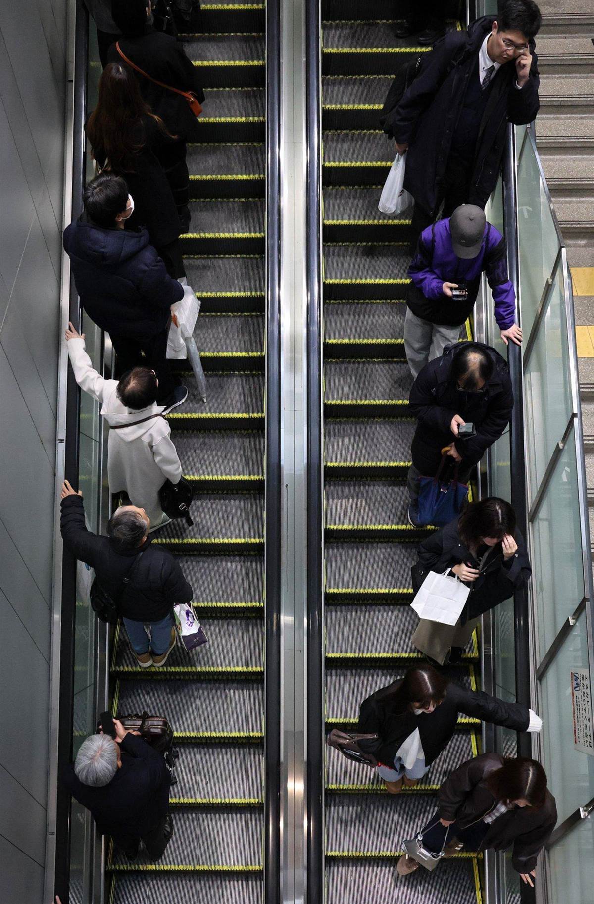 2、昨日今日始まったものではなく、長い間定着しているものを変えるのは、簡単なことではないと思います。危ないとわかっていても、前の人が左に寄っていると、つい同じように乗ってしまうんでしょうね。でも安全を第一に考えるなら、止まって2列が一番いいのかもしれません。特に高齢の方や体の不自由な人にとっては、隣を歩かれるだけで怖いと感じることもあると思います。名古屋のように止まって2列が広まれば、安心して使えるようになる気がします。