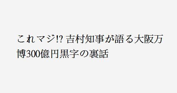 3、事前調査やインフラ整備等の全ての費用と収入で差し引きしたら大赤字でしょ。入場者数は地元企業とリピーターに支えられていたようで、日本全体で盛り上がっていたかというと?です。まあ、吉村お得意の赤字の国への転嫁で、税金で補填しなくて済んだことはよかった。