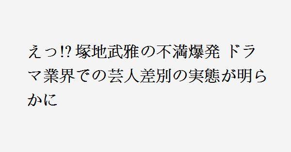 お笑いコンビ・ドランクドラゴンの塚地武雅が、テレビ東京系「あちこちオードリー」に出演し、ドラマ制作現場での芸人の扱いに不満を表明しました。塚地は、芸人がドラマの撮影で軽視されているとし、出演シーンが最後に組まれるために4~5時間も待たされることや、待機中に畳の部屋が使えないため椅子しかない楽屋で過ごさなければならないといった状況を説明しました。
