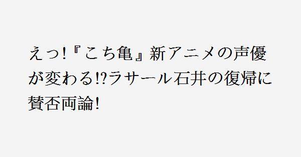2、今のラサール石井さんは色々とおかしい発言を連発してますので、両さんは演じないで欲しいですね。「ラサール石井さんの声じゃないとダメ!」と思ってる人達の気持ちは分かりますけど、正直、両さんのイメージに合ってたら誰でも良いと思ってますので新声優が誰になるのか気になるところです。