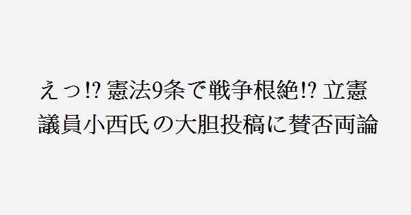 1、願望を述べるだけだったら子どもでもできる。国会議員の仕事は、その願望をどうすれば具体的に実現できるのか政策をかんがえていくことだ。それが国益に繋がる形でね。小西さんには国際法すら守らないロシアや中国に憲法九条を導入させるための秘策があるのかな?日々、他人の言動をあげつらったり、実現不可能な意見を言うことに腐心しないで、もう少し今の日本や国際状況を考えたうえでの建設的な意見を述べるべきだよ。