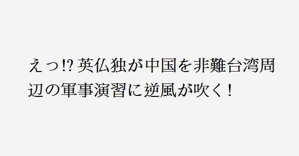 1、仏独英の外務省が、足並み揃えて中国による台湾周辺での軍事演習に懸念を表明し、武力や威圧による一方的な現状変更に改めて反対したことは、中国の台湾武力侵攻に対する抑止になったと思うので意義が大きいと考えます。今や、世界の大多数の民主主義国家にとって『台湾海峡の安定は国際安全保障と繁栄に極めて重要』というのが国際的共通認識だと思います。日本政府としても、こうしたG7加盟国やASEAN諸国、インド、オーストラリアなど価値観を共有する国々と連携して、中国の国際秩序を乱す蛮行を批判し続けることが重要だと考えます。