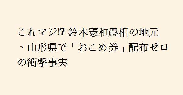 山形県では、鈴木憲和農相の影響力が大きいにもかかわらず、調査対象の35市町村のうち、配布を決定した自治体は1つもありませんでした。