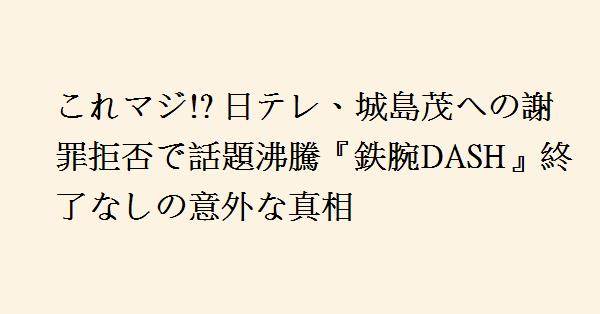 3、なお、『ザ!鉄腕!DASH!!』につきまして、番組終了の予定はございません→違和感しかありません。きっと終了は、規定路線で、どこかのタイミングを見計らって発表するんでしょうね。仮にこれで継続してしまっても、ぎくしゃく感しか残りませんし、この騒動がさらに発展する可能性もあります。日テレはコンプライアンスを盾に強気の姿勢ですが、日テレ自体のモラルも問われていることを肝に銘じるべきですね