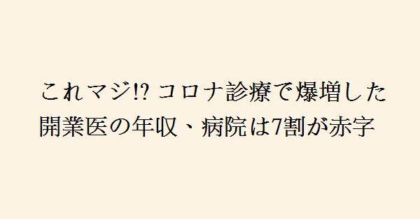 1、さすがプレジデントオンライン。悪意満載の記事内容。そもそもあれだけ新型コロナが発生し大騒ぎになったなかで、得体のまだ知れないものへの対応にお金を行政が払うのは当たり前。どこの誰が善意だけで対応するんだろうか?現代において医は仁術なんて言葉で胡麻化そうとするのは無理です。そもそも開業医は医業収入から税金をほぼ半額以上取られて、そこから更に開業時の借金などを返すんだから思われているほどお金は残らないのが事実。一部の継承開業医や美容・白内障手術眼科医の儲けで全体の収入金額が上がっているだけ。勤務医には分からないんだろうけど開業医には経営者なりの苦労があることは分かってあげないといけません。