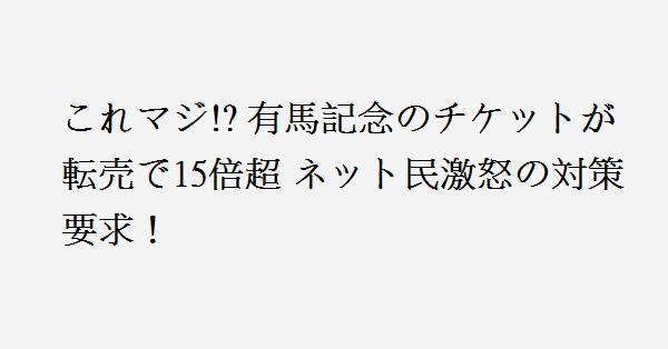 中央競馬のグランプリ・G1有馬記念が12月28日に中山競馬場で開催される。しかし、入場券が転売市場で15倍以上の高額で取引され、ファンから悲鳴があがっている。JRAの公式サイトでは転売禁止が明記されているが、特に倍率が高いボックスシートでは461.7倍、B-Seatは81.4倍となっている。TBS系ドラマ「ザ・ロイヤルファミリー」の影響もあり、争奪戦が激化。