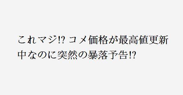 1、必ず暴落します。かなりそうとう米余ってます。でもいま高く買った米を安く出せないのです。ギリギリまで待ってどうにもならない所まで待っている所です。倉庫パンパンです保管場所も困るくらい。そして来年沖縄産のコメが新米が、早場米ができるころ。大大暴落が始まります。5kg2000円でも売れなくなるかもしれません。卸は倒産するところも出るでしょう。だから今安く出せないのです。それを知っているからお米券で何とかJAを助けようとしている農政族大臣の策略で恩を売っておきたいのです。