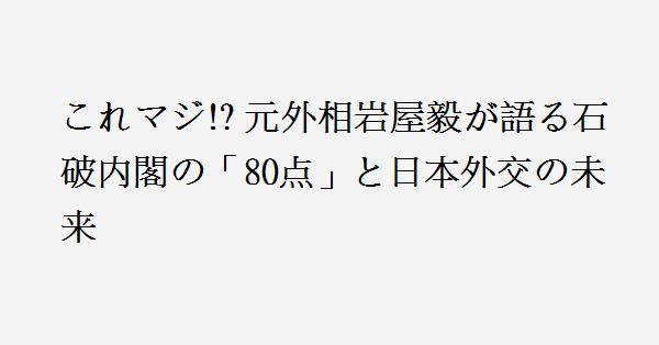 岩屋毅前外相は日本の外交と多文化共生の重要性を訴え、「日本人ファースト」の風潮に疑問を呈しました。彼は石破政権を80点と採点し、外交における対話の重要性を強調しました。彼は特にネット空間で横行する誹謗中傷や排外主義的な声を問題視しており、対中・対韓外交を今後も大きな課題と見る一方、外国人を一括りにした非難に異を唱えています。