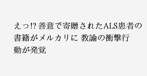 東京都世田谷区では、区内の公立小・中学校に善意で寄贈された書籍が教諭によってフリーマーケットサイト「メルカリ」に無断で出品されていたことが判明しました。本書はALS患者が手記として書き、福祉関係のNPO法人を通じて全90校に寄贈されたものです。この不正行為は昨年秋に確認され、区教育委員会は調査を進める一方で具体的な経緯を公表していません。さらに教諭への処分や刑事告発を検討している状況ですが、対応の遅れに批判が集まっています。