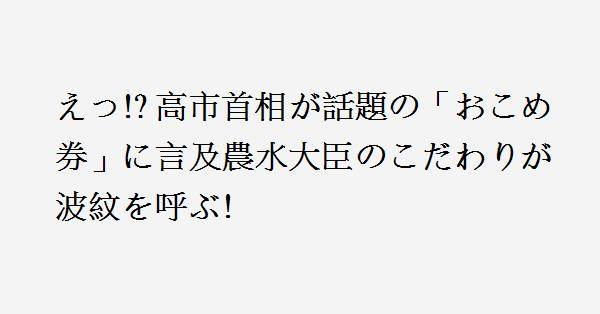 2、民意からしても、即刻辞めるべき制限付きギフト券なんてありえない、強制的にコメ変えと言わんばかりの大臣であるこの人の自論いくら唱えても、これに税金使ってお米券配布は、生活者とかけ離れた感じであり、即刻辞めるべき大臣は、この政策しかないのかね、こだわりには違和感ばかりである