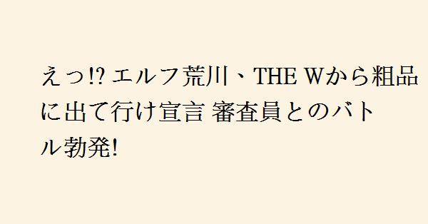 「女芸人No.1決定戦 THE W 2025」が2025年12月13日に日本テレビ系で生放送され、審査員の「霜降り明星」粗品と「エルフ」のやり取りが注目された。エルフはパンツ万博に勝利したが、ニッチェに僅差で敗れた。審査員の粗品はニッチェに票を投じ、その意見を「客に透ける稚拙さ」などと批評した。荒川はこれに反論し、粗品に退場を求めた。