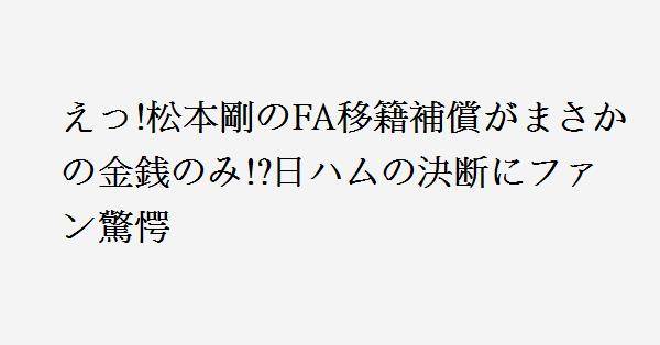 3、今シーズンはFA権を取らせるために出場数を稼いでいましたし、ファイターズでの居場所が無くなってきた松本選手のための巨人への移籍だったように感じます。年齢的にも成績的にも巨人ファンから不安視されている中で、さらに人的補償で松本選手の立場が悪くならないように球団としても配慮したのではないでしょうか。