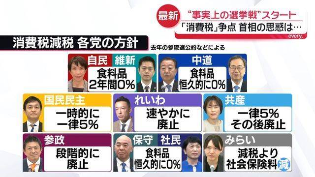高市首相は記者会見で「消費税減税の検討を加速する」と発言し、事実上の選挙戦がスタートしました。主要な争点は「食料品の消費税減税」。自民党や維新は2年間限定で食料品消費税ゼロを検討、中道改革連合は恒久的なゼロ税率を掲げています。永田町や市民の間では期待と懸念が交差しており、2年間限定の減税で生活に与える影響やその後の増税への不安が浮き彫りに。与野党の間で減税に対する本気度や具体性への疑問も投じられています。国民民主党の玉木代表は、減税を「料理」に例え、一部政党の減税議論が具体性や迅速性に欠けると批判。減税政策を巡る選挙の動向に、注目が集まります。