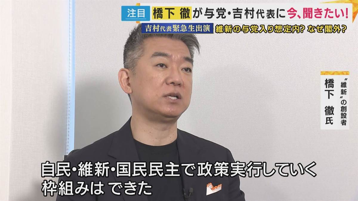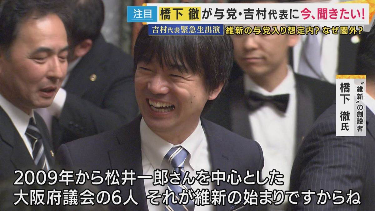 2025年10月21日、関西テレビ「newsランナー」において、自民党と日本維新の会の連立政権となった高市内閣に関するインタビューが行われました。インタビューでは、維新の創設者・橋下徹氏が自民党と公明党の過半数割れを狙った戦略の結果、維新が政権与党となった過程を振り返り、国民民主党や維新の代表に対して、具体的な政策実行を求めました。