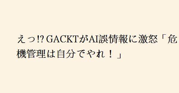 GACKTが、津波警報が発令された際にGoogleのAIが誤報で【すべて解除】と表示した件について、X(旧ツイッター)で苦言を呈した。彼は8日深夜に青森沖で発生した地震の際、AIが誤情報を示した報道に対し、「危機的状況でAIに判断を委ねることが問題」と指摘。AIは観測機関ではなく、誤情報を出す可能性があるため、ユーザーの危機管理能力の欠如を問題視する。