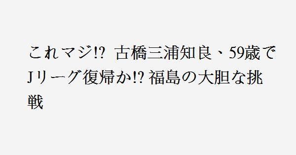 300字以内の事件概要:J3福島ユナイテッドFCが、元日本代表FW三浦知良の獲得を目指していることが関係者から明らかになりました。三浦は来年2月には59歳となり、Jリーグ復帰を果たせば2021年以来となります。福島は2002年に設立され、2014年にJリーグに参入。寺田周平監督のもとで今季10位の成績を収めました。三浦は今季、JFLのアトレチコ鈴鹿でプレーし、7試合に出場するも無得点で、チームは15位で降格しました。