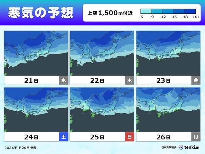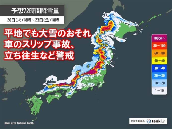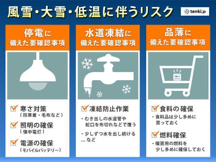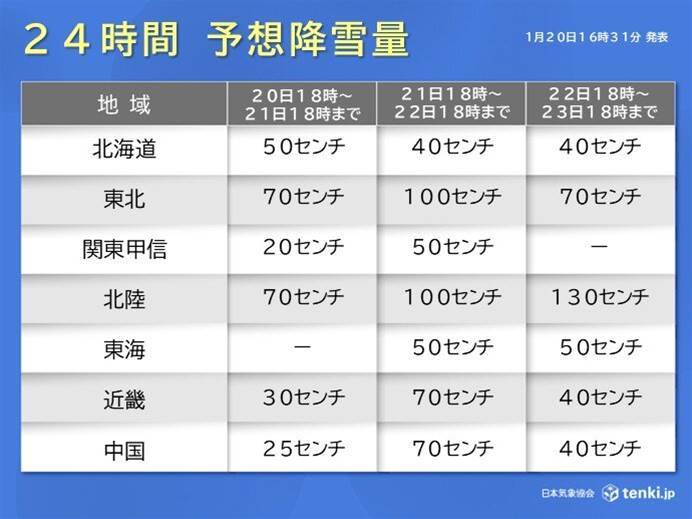 今季最強・最長の寒波が日本列島を襲う見込みで、21日(水)から25日(日)にかけて寒気が居座る予想です。日本海側を中心に平地でも大雪となり、太平洋側でも積雪が懸念されます。特に北陸や山陰では短時間に雪が激しく降る可能性があり、22日から23日にかけて北陸では130センチの降雪量が予想されています。交通障害が発生し、道路ではスリップ事故や立ち往生、倒木、停電、水道の凍結、商品の品薄などが懸念されています。不要不急の外出は控え、万全な準備が求められます。