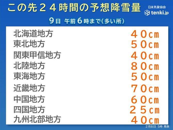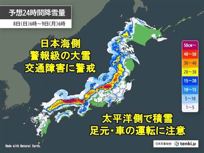 東京都心では8日(日)午前6時時点で積雪3cm、千葉市でも4cmを記録したほか、関東平地でも比較的まれな積雪が観測されました。日本付近を強い冬型の気圧配置が覆い、今季最大レベルの寒気が流れ込み、北陸地方では鳥取市で36センチ、金沢市で32センチなど高い積雪が記録されています。全国で青森県や兵庫県など10府県に大雪警報が発表され、交通障害や雪崩のリスクが警戒されています。また衆議院議員総選挙の投票日であり、降雪による投票行動への影響も懸念されています。9日まで各地域でさらに雪が降る見込みで、暴風雪や一酸化炭素中毒リスクを考慮した行動が重要とされています。