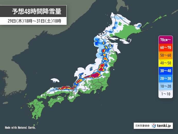 日本付近は今夜から明日にかけて冬型の気圧配置が強まり、日本海側を中心に大雪が降る見込みです。特に北陸地方では、29日夜から30日明け方にかけて最も大きな影響が出ると予測されています。東海地方では30日、北海道日本海側では31日未明からさらに天候が悪化する可能性があります。道路は積雪や凍結による高速道路の通行止めや速度規制が行われる恐れがあり、交通事故のリスクも高まる状況です。雪装備の不備による立往生を防ぐため、スノータイヤやチェーンの準備が必須です。特定の気圧配置「日本海寒帯気団収束帯(JPCZ)」が大雪をもたらしており、通常雪が少ない地域でも交通網に重大な影響を及ぼすことが懸念されています。