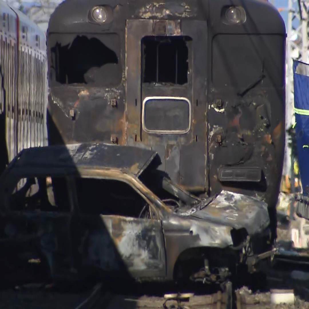 20日午前、京都府精華町の近鉄京都線「新祝園駅」近くの踏切で特急列車と軽乗用車が衝突し、軽乗用車が炎上して車内の人が死亡しました。事件は午前11時すぎに発生し、軽乗用車は橿原神宮前行きの4両編成の特急と衝突し、100メートル以上引きずられた後炎上。約3時間後に火は消し止められたものの、特急の先頭車両や京都行き急行の側面にも延焼しました。