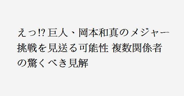2、左肘が完治しているのなら米に挑戦して欲しい。もちろん巨人には痛いが、岡本がMLBで活躍する姿も見たい。あと1年経過すると売り時の観点からも得策でないように思う。また、広岡爺のように通用しないなどと根拠もなく偏見で決めつける必要もない。残された巨人では、岡本の穴をすぐ埋められる筈もないが、三塚や荒巻などの有望株もいる。ポジション違うが石塚もいる。