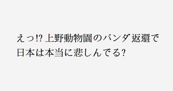 4、そもそも上野動物園にいかないと見れないわけだし、東京にいったときに何かのついででパンダも見た人ならいても、パンダを見るためだけに上京したことのある地方在住の人は、いたとしても国民のごくごく一部でしょう。エリマキトカゲやコアラなど、ブームになった動物はこれまでにもけっこういましたけど、いなくなったらいなくなったで他のブームができますよ。というか、熊被害が増加中の日本では熊猫はややイメージ落としているような。ましてこういう政治的威嚇の道具として使われればね。中国自らパンダの価値落としてどうするんですか。