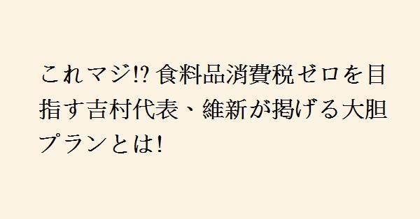 2、維新が次の選挙で議席を維持できた場合に実行するというのであれば、まずは消費税に代わる確実な財源を提示していただきたいものです。吉村氏の公約は、結局のところ「田舎の口だけ〇〇」や「絵に書いた○○」と変わらず、自民党に都合よく利用されるだけで、説得力に欠けています。