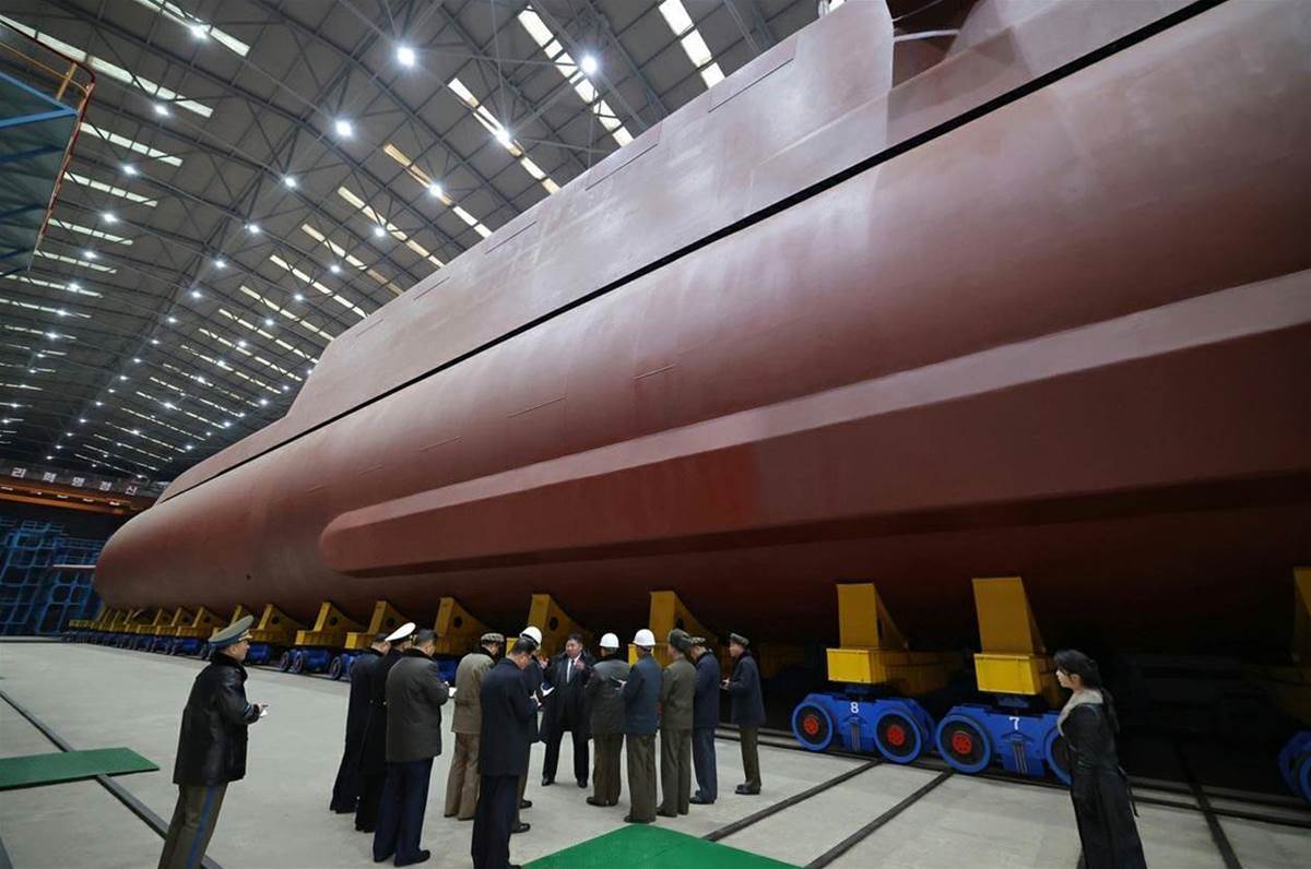 北朝鮮は2025年12月25日に、8700トン級の原子力戦略誘導弾潜水艦の写真を初公開しました。これまで部分的な写真のみが公開されていた中、この発表は潜水艦の全体像を明らかにするもので、近々完成予定です。しかし、8700トンの排水量が基準排水量か水中排水量かは不明です。写真では、5つのラインが確認できる発射筒区画があり、ミサイル搭載数が10発と推定されます。