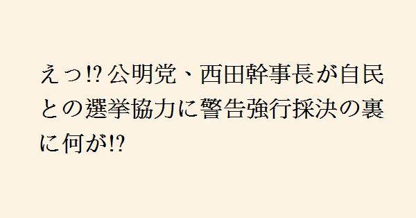 公明党の西田実仁幹事長は10月9日の記者会見で、公明党が自民党との選挙協力を続けるには衆院議員定数削減法案の採決が慎重に行われる必要があるとの認識を示しました。西田氏は、与党がこの法案を強行採決すると協力の環境が失われると述べ、現状の方針をけん制しました。公明党は連立政権からの離脱後も、地域レベルで自民党との選挙協力を容認する姿勢を見せていたが、定数削減の強行がその動きを妨げる可能性があります。