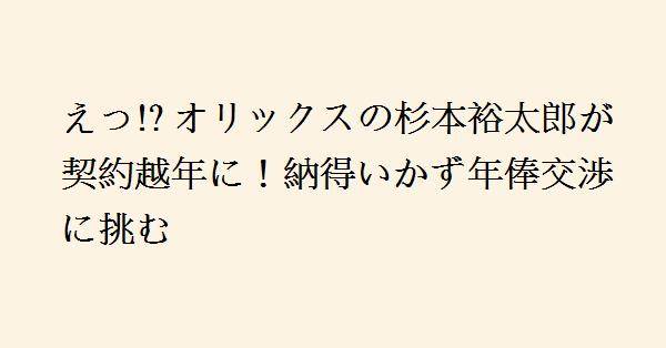オリックスの外野手、杉本裕太郎選手(34歳)の契約交渉が年を越して継続されることが確定しました。杉本選手は今季、4年ぶりに規定打席をクリアし、チームトップとなる16本塁打とOPS.758を記録しました。しかし、提示された年俸は6700万円から約1000万円増という内容で、杉本選手は「納得しないまま契約するより、時間をかけた方が良い」との考えを示しています。