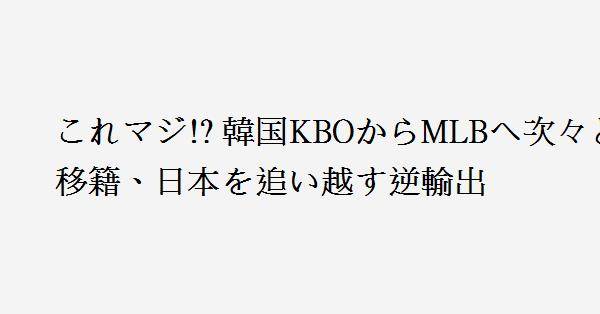 1、メジャーとAAAの間くらいのレベルのNPBでそこそこか悪い結果で終わるよりAA以下のレベルのKBOでぶっちぎりの成績残した方が可能性あるって事だわ。見栄えの問題で今は良いかもしれないけど、これからKBOでぶっちぎりの成績だった選手がメジャーで通用しなかったら数年後には誰も手を出さんようになる