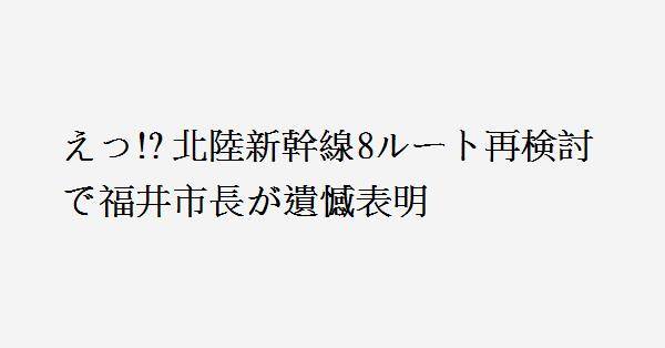 北陸新幹線敦賀―新大阪延伸ルートに関連して、自民党と日本維新の会が「小浜京都ルート」を含む8案を再検討する動きがあり、福井県小浜市の杉本和範市長はこれに対して不満を表明しました。同市長は、沿線自治体の意見を尊重して決定した現行ルートを白紙に戻すことは遺憾だと述べています。2016年に決定されたルートは、反対意見の出なかった3案から採用されましたが、8案の中には福井も滋賀も望んでいないルートが含まれており不満があると指摘されています。