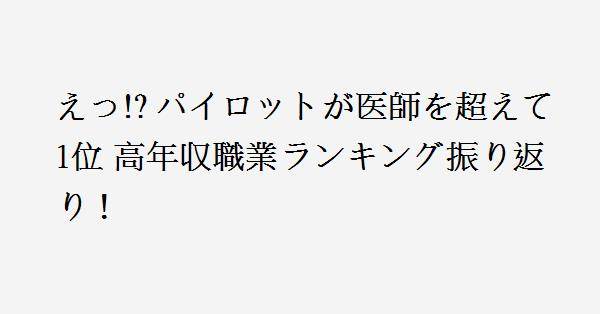 1、いずれもワークライフバランスをとるのは難しい職種。専門性や難易度もそうだけど、この部分を削る対価としての給与の部分も大きいと感じる。パイロットや医師の一部は年末年始なんて「なにそれ美味しいの?」状態だろうし、開業医にしても連休は取りにくい上に、休日は学会など。歯科医も近年は競争が激化しているから今後の平均年収がこのまま推移するかは不透明かもしれない。それでも、使命感だったり、憧れだったりが勝る人でないと慣れないし継続できない職種だと思う。