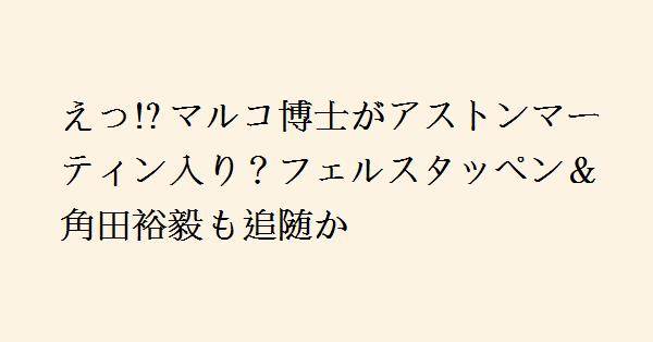 アストンマーティンは、昨季まで4年連続でF1王者となったマックス・フェルスタッペンに関心を持っているが、マルコ博士は自身の移籍を否定しており、今後の動向が注目される。角田裕毅にとってもマルコ博士の存在がプラスに働く可能性がある。