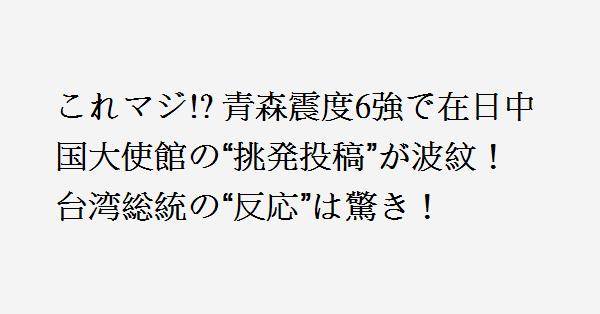 青森県東方沖で12月8日午後11時15分頃、最大震度6強の地震が発生。震源の深さは約50km、マグニチュードは7.5と推定されており、津波警報が発令されたが翌朝には解除された。負傷者は30人、火災等の被害も報告されているが、死者はいない。日中関係の緊張が続く中、日本の震災への反応が中国で様々な議論を呼んでいる。中華人民共和国駐日本国大使館は注意喚起を行ったが、その後挑発的な投稿を行い、物議を醸している。