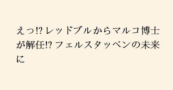 1、イギリスのスカイが報道してるのでかなり確度は高いニュースですね最終戦後にメキースがマルコの去就について聞かれて非常に歯切れの悪い回答をしていたのも納得できますし、マルコ本人も「来年についてはこれから協議する」と答えてましたしまあ最近のアントネッリへの殺害予告にまで発展した騒ぎの張本人でレッドブル社内でもマルコへの信用が揺らいだところに、シーズン途中でマクラーレン育成から突如解雇されたダンと勝手にレッドブル育成契約したことが発覚して、本社が大金の慰謝料を払ってダンと契約を解除したという話もあります・・・・