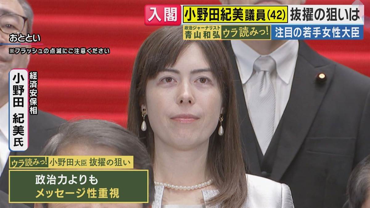 小野田紀美大臣は、2025年10月23日に放送された関西テレビ「旬感LIVE とれたてっ!」で紹介されました。彼女は新設された「外国人との秩序ある共生社会推進担当大臣」および「経済安全保障担当大臣」に抜擢されました。番組では、青山和弘氏がこの抜擢の背景と重要性について解説しています。小野田大臣は、中国を含む外国から技術が盗まれるリスクを防ぐための経済安全保障の重要性を指摘され、外国人政策については厳格な姿勢を示しています。