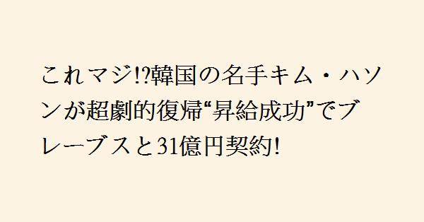 2、今季成績は2球団で計48試合に出場し、打率・234、5本塁打、17打点。この成績で30億円は凄いな。まあ、球団側は、キム・ハソンに対して複数年契約はリスクがあるとみて、どうしても複数年契約は回避したくて、単年度契約にとどめるためにこの金額にしたんだろう。キムの方も本当は複数年契約が欲しかったが、この成績では多くは望めないので、単年度で増額してくれたのならラッキーというところだろう。