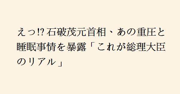 1、石破氏は「睡眠も仕事のうち」と述べていますが国会や平和式典といった公の場で総理大臣が居眠りをするのは明らかに不適切であり、国の代表として恥ずべき行為だと思います。高市氏の睡眠時間に関する話題とは、次元の異なる問題ではないでしょうか。