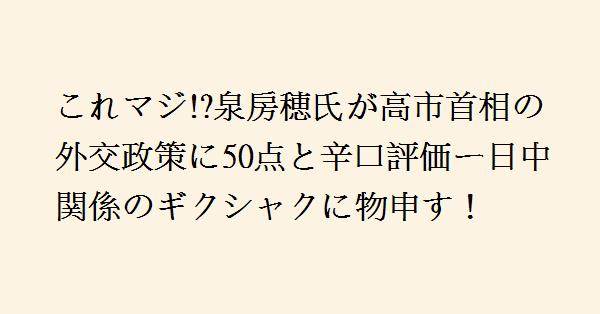 泉房穂参院議員がニッポン放送の番組に出演し、高市早苗首相の外交政策を厳しく評価しました。放送は10月10日で、高市首相が就任してから約2か月が経過した時点です。泉氏は、中国との関係が悪化していることから、外交政策に「50点」と辛口評価をしました。ジャーナリスト須田慎一郎氏は同政策を90点とする一方で、中国との関係がコンサート中止などに影響を及ぼしていることを指摘しています。