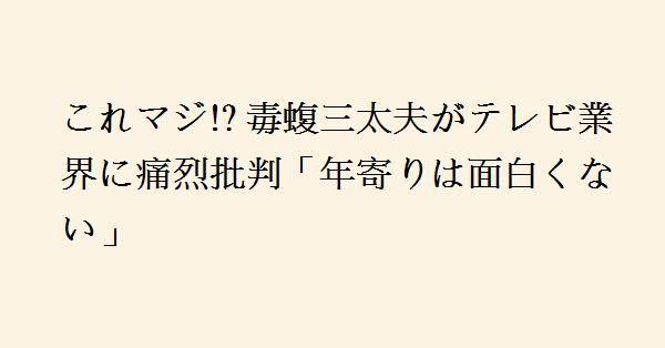毒蝮三太夫はYouTubeチャンネル「一般社団法人 日本喜劇人協会」にゲスト出演し、最近のテレビ業界への不満と批判を表明した。彼は、特に地上波番組について「コントの連中がギャーギャー言っていて、年寄りには面白くない」と語り、タレントがひな壇に座っているときに面白いことを言おうとする姿勢に苦言を呈した。彼の意見は、テレビ番組が視聴者の多様性を考慮せず、無駄に騒がしい内容が多く、若者向けのコンテンツに偏っているという問題点を指摘している。