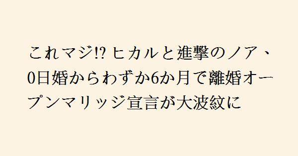2025年12月19日、YouTuberのヒカルさんが実業家の進撃のノアさんとの離婚を発表しました。この結婚は、交際期間ゼロで行われた「0日婚」として注目を浴び、当初は祝福ムードに包まれていましたが、わずか6か月で破局しました。9月14日、ヒカルさんは「オープンマリッジ」を宣言し、配偶者以外との関係を認めることを明かしましたが、この発表は視聴者からの批判を招き、彼のチャンネルの登録者数は507万人から480万人へと減少しました。